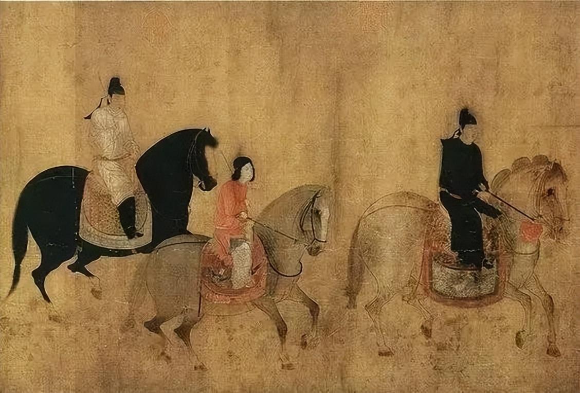 唐朝张萱的画作中,描绘了虢国夫人同其他两国夫人一同出游额景象。