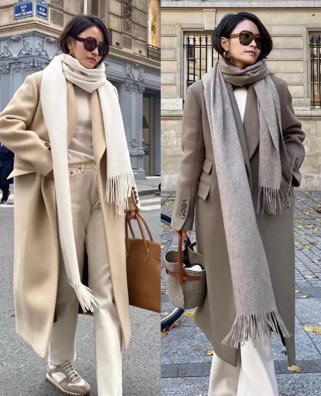技巧4、外套敞开穿,露出腰线高度