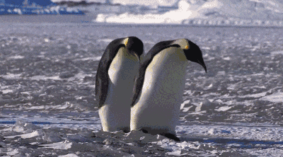 帝企鹅引吭高歌以示爱意而帝企鹅之间的求偶行为更是让人觉得十分浪漫,在春天来临之时,雌雄帝企鹅的发情期到来,他们会像心有灵犀一样,同时仰首向天,他们长长的尖嘴喙弯出一条优美灵动的弧度。