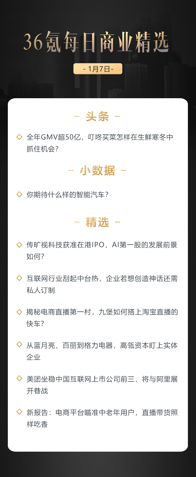 本文来自36氪付费栏目《36氪每日商业精选》——1月7日
