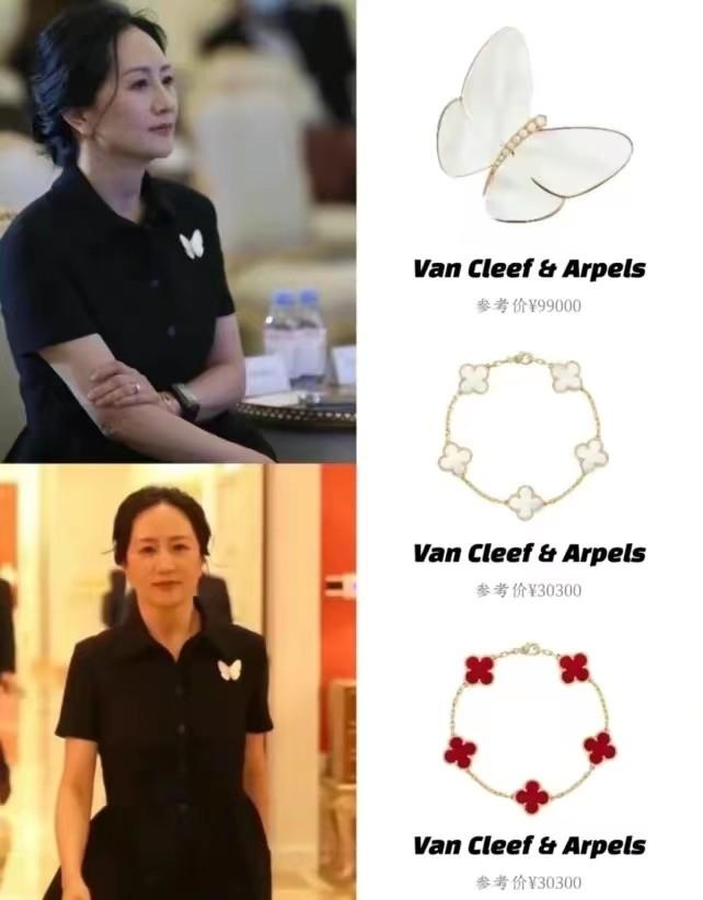 而这款胸针也是来头不小,出自品牌梵克雅宝,官网上的价格更是直逼10万元,是孟晚舟的心头好,早在3月份参加华为大会时,她就佩戴着这枚蝴蝶胸针亮相过。
