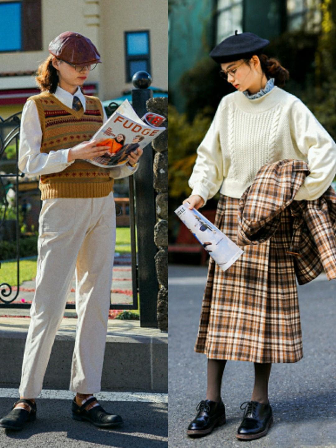 如果毛衣的颜色是以浅色系为主,那么其他单品就要以深色系为主,这样才能够体现出英伦风格的复古味道,而不是把风格变成典型的休闲风。