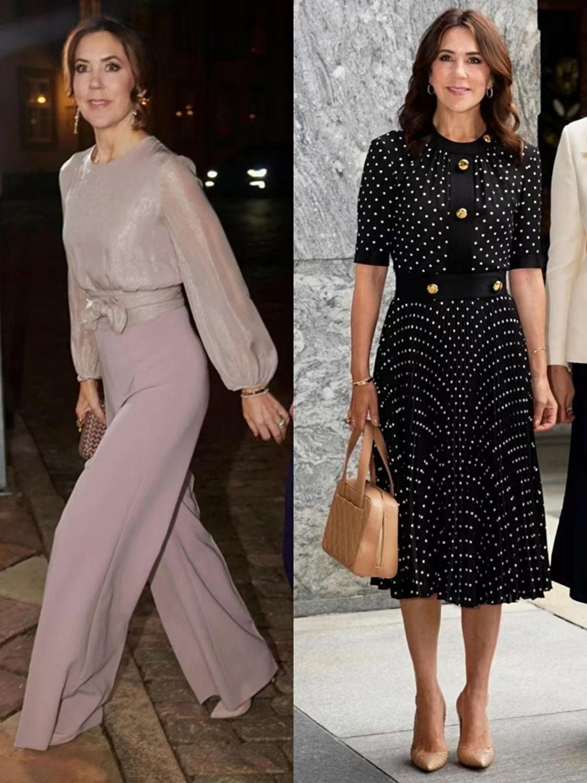 三、玛丽王妃的搭配示范玛丽王妃的穿搭优雅而高级,堪称教科书级别的示范,值得借鉴。