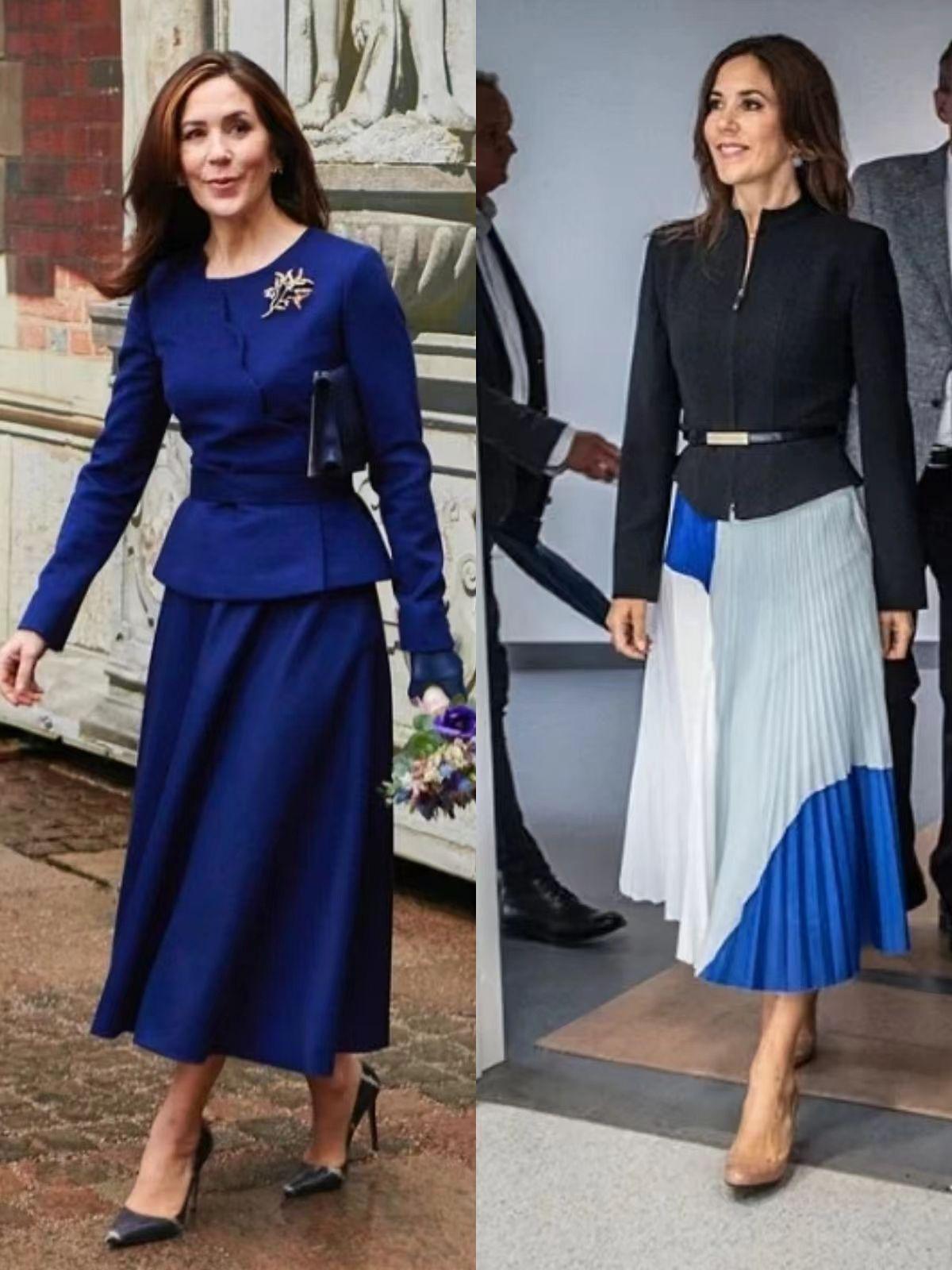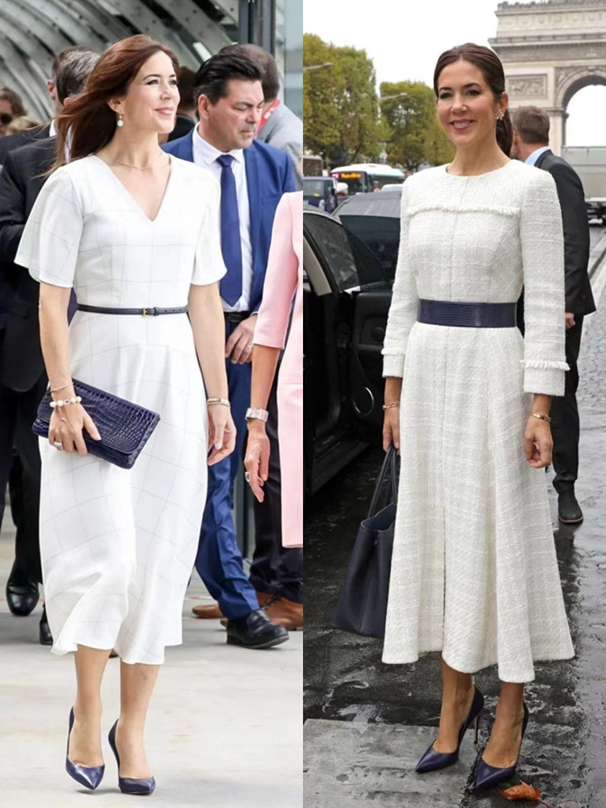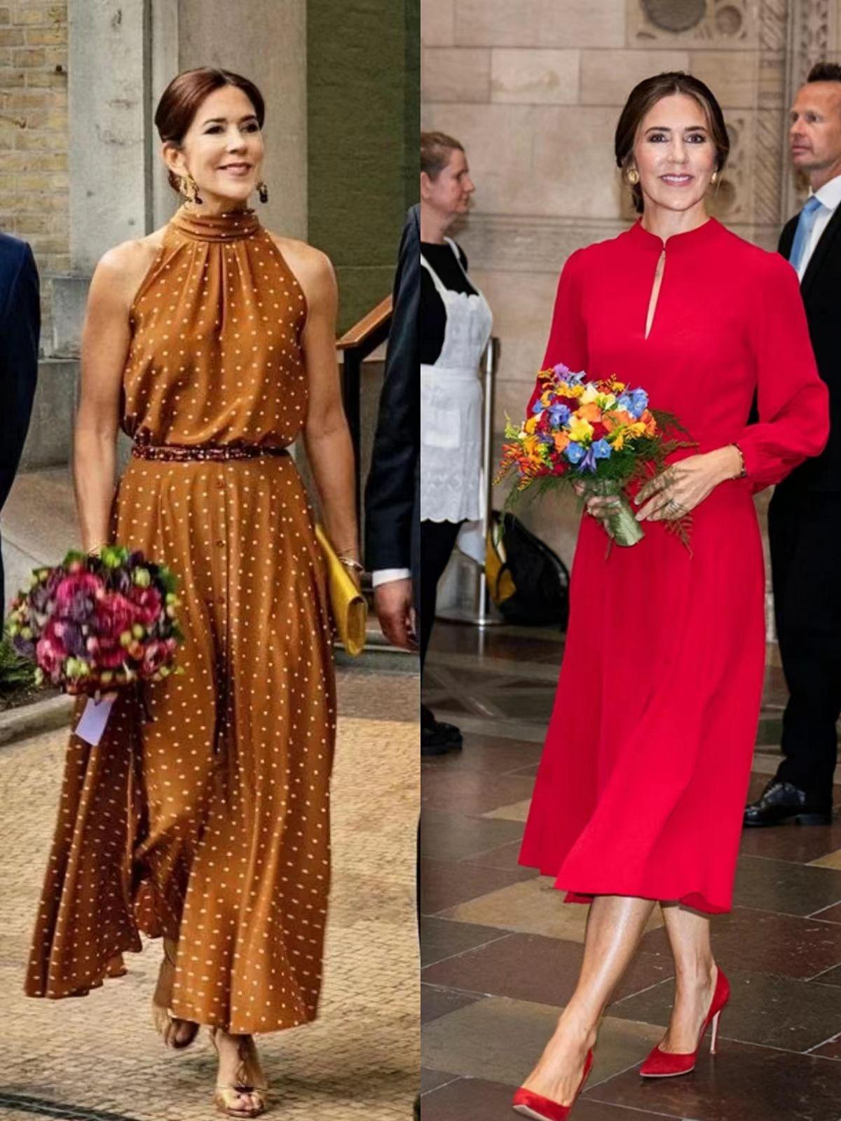 像玛丽王妃在选择套装或者连衣长裙时,都会用垂坠顺滑的面料凸显高级感。