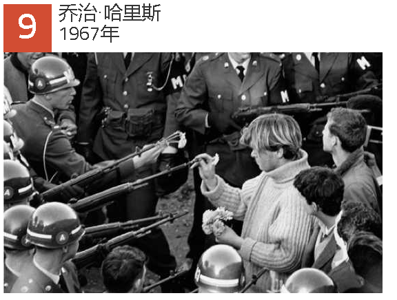 乔治·哈里斯(George Harris)是来自纽约的年轻演员,拍摄这张照片时大约18岁。1967年3月,在五角大楼抗议越南战争,游行者迅速被联邦军包围。他们围成一个半圈,枪口对准示威者。那时,哈里斯·哈里斯(Harris)在士兵们的枪管上放了一些花,以试图化解局势。摄影师伯尼·波士顿拍下了这张照片,这张照片已成为1960年代反战运动的照片。后来,哈里斯(Harris)取了芙蓉(Hibiscus)的名字,并共同创立了一个华丽,迷幻,以同性恋为主题的杂技团,名为“轻舞女”。Cockettes的其他成员是迪斯科迪瓦(Disco Darva)亲爱的西尔维斯特(Sylvester),以及备受争议的B电影演员神(Divine)。乔治·哈里斯(George Harris)是一名早期的艾滋病受害者,于1982年去世。他去世时,新疾病仍被称为GRID。(与同性恋有关的免疫缺陷)