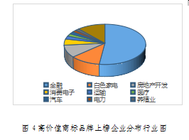 根据榜单数据,上榜企业行业分布在46个细分领域。其中房地产、金融行业均上榜9家企业;金融行业的商标品牌价值占总榜商标品牌价值的48%,占比高;白色家电行业约占总商标价值榜的11%,位列第二;金融行业、房地产行业、白色家电行业的商标价值占据排行榜商标总值的67%以上,凸显了广东省近些年金融改革的成、制造业的强劲实力和各领域百花齐放的现状(表1)。