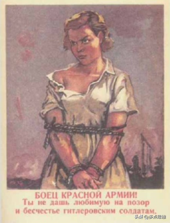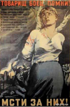在尼·瓦托利纳的画作《战斗员同志,请记住,为他们报仇!》中,一位身着民族服装的少女被绑在一棵树上,她身后的德军正在虐杀平民。画面上方的数字记载了德军的暴行:“仅在以下城市和地区,德军就杀害数十万苏联人民:基辅市20万,明斯克市15万,斯摩棱斯克地区13.5万,敖德萨地区20万,日托米尔地区18.7万,扎波罗热7万。”简明的数字控诉出纳粹的暴行,画作呼吁红军士兵谨记平民的伤亡人数,并为他们报仇。