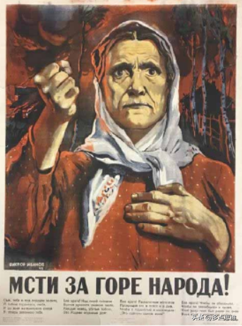 在宣传画《为人民的痛苦复仇!》作者维·伊凡诺夫通过对受难母亲外貌的细致雕刻,对母亲情感的细致揣摩后塑造出一位饱受敌人欺凌的母亲,母亲破旧的衣衫和痛苦的表情暗示敌军对她实施的暴行。这位母亲左手护在胸前,右手紧握拳头向上举起,象征着后方母亲对前线每一个战士(孩子)的期望与嘱托。她身后萧条的树枝和漫天的血光呈现出敌人侵略后的荒凉景象,这幅作品表现出数百万苏联母亲对德国占领者的仇恨,母亲呼吁红军对德军进行报复。
