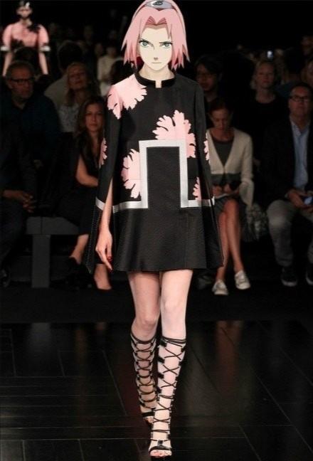 小樱作为火影忍者的女主角,备受争议,不过她化为时装模特之后,看起来很飒。小樱穿上很时髦的黑色印花服饰,上面的印花是樱花色的,这也很符合小樱本人的设定。小樱的头发就是樱花色,整体看起来都颇有气质。这样的小樱,你是否喜欢呢?