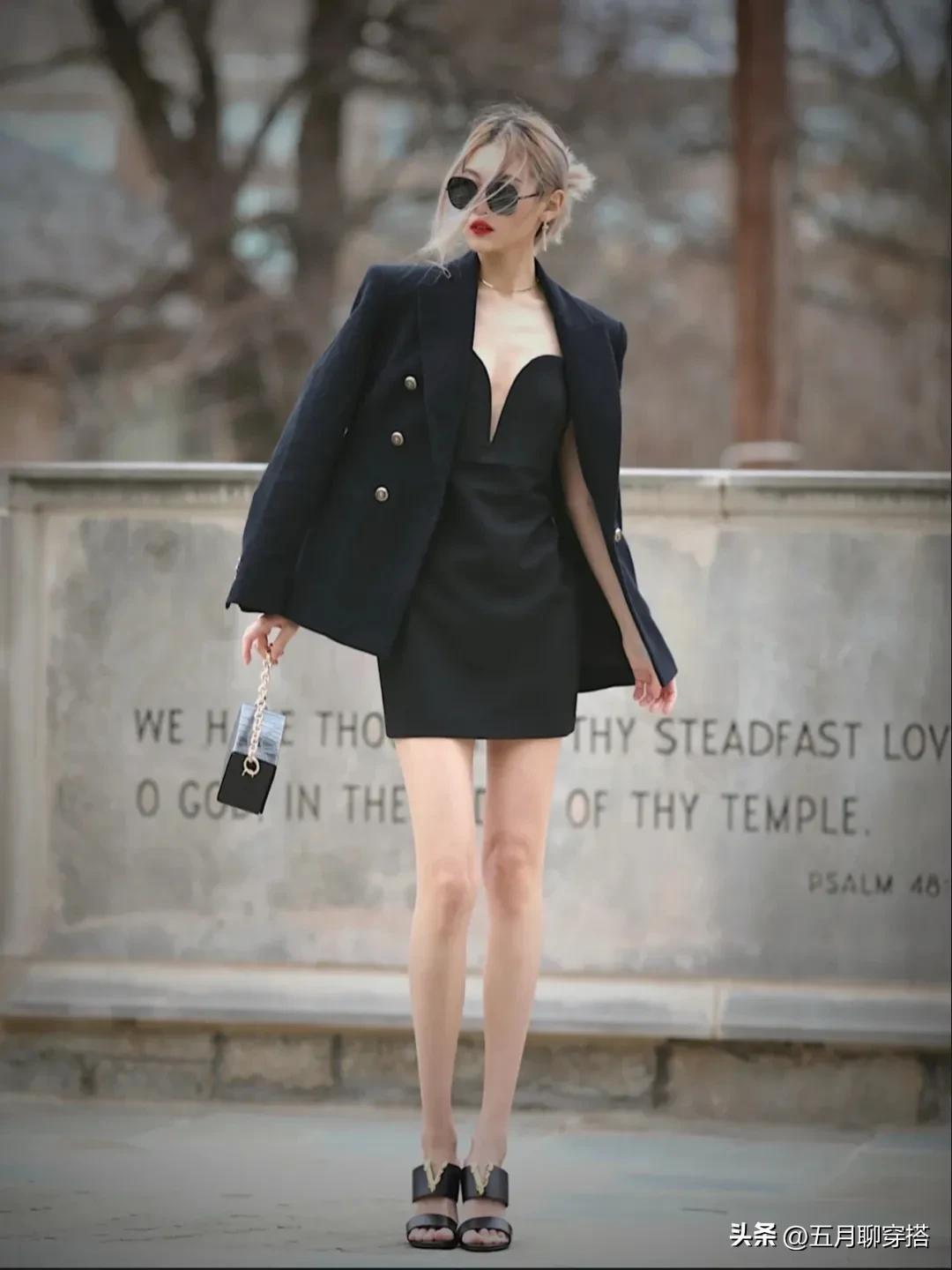 第2身比较小女生的风格,小黑裙基本是我oarty 穿搭的!心型领口的设计既可爱又性感。搭配一件西装外套就会比较有气质啦不足就是这件裙子我穿有一丢丢大,抹胸的设计感觉会有点往下掉