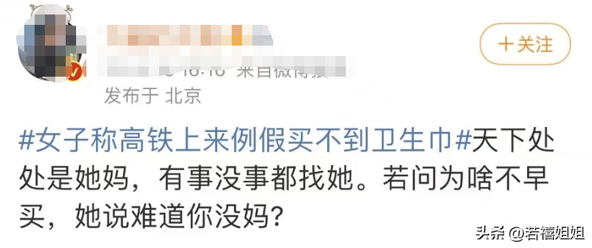 甚至关于高铁卖卫生巾的问题上,也有女性觉得是大惊小怪。