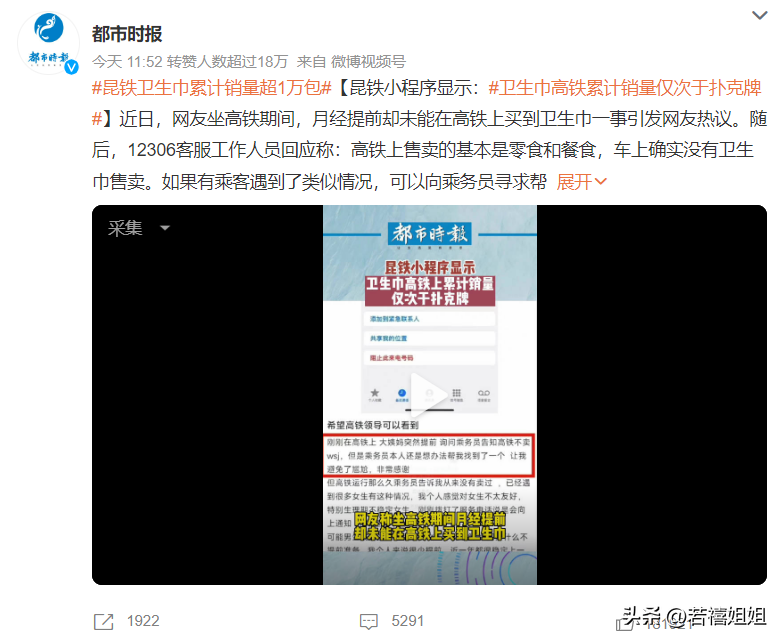 没多久,她在网上发了一个帖子,建议高铁考虑售卖卫生巾。