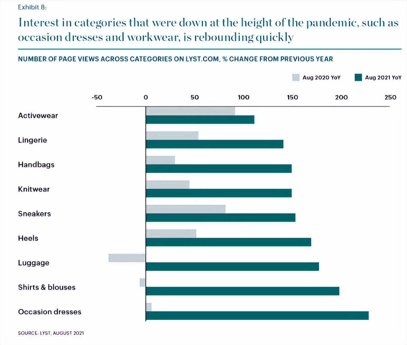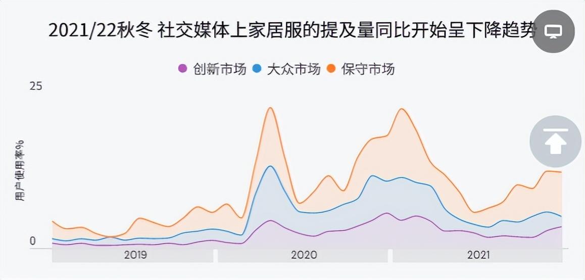 统计数据显示,人们对场合装和工作服等在疫情时严重下降的类别的兴趣正在迅速反弹,家居内衣品类虽不及疫情时的热度可观,但相较于2020年,整体市场趋势还是呈稳步上升态势。