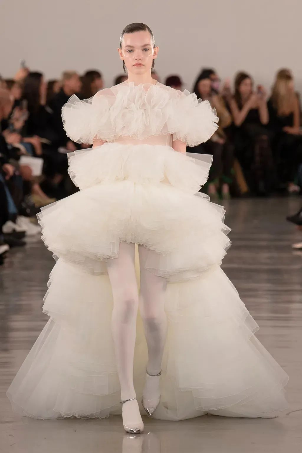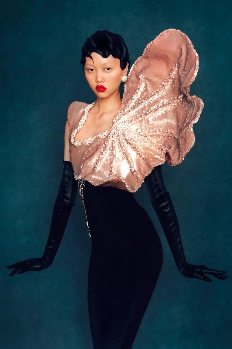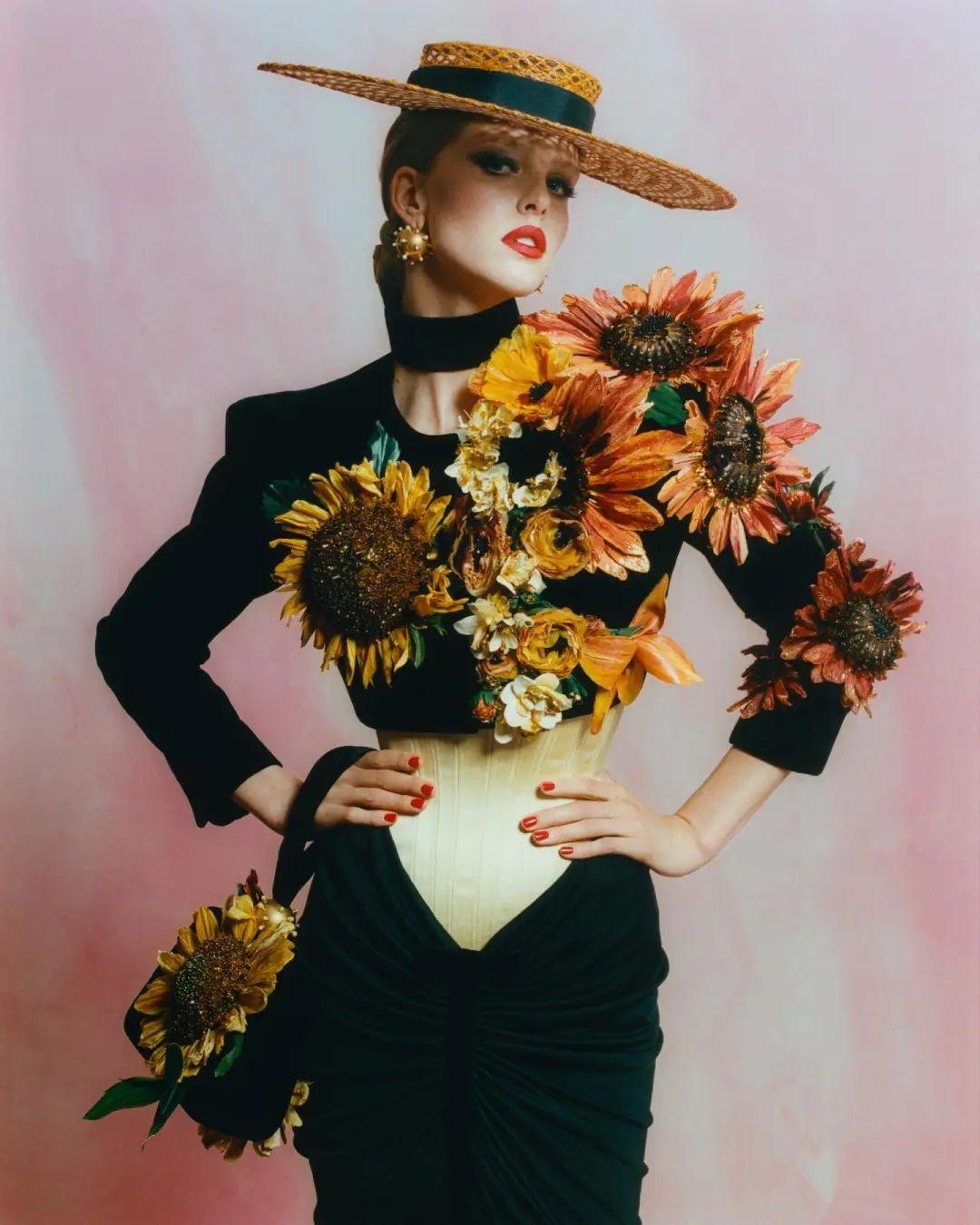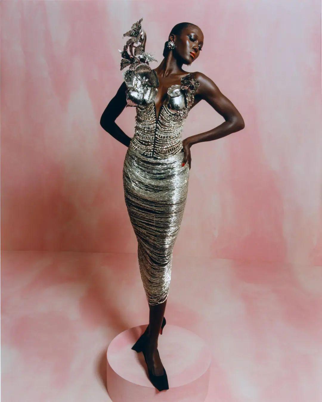 她擅长以雕塑般的廓形和光泽感面料描绘出花卉的轮廓。那些裙边出一针一线缝制的珠玉刺绣细节,近距离观察下美到窒息。