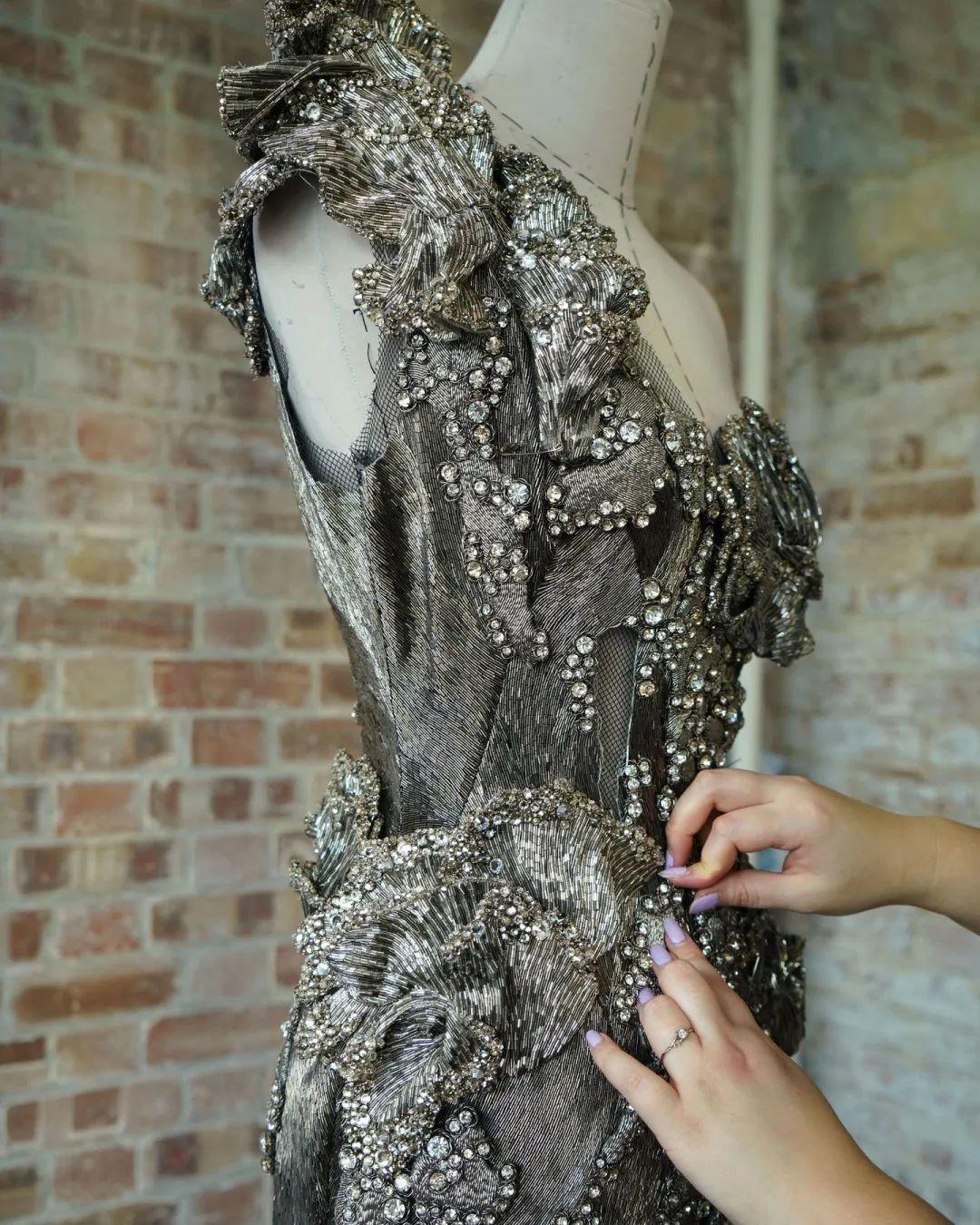 Sarah Burton同时将服装的制作过程一五一十更新在社交媒体,近距离注视下的半高定礼服,让时装的美妙与神奇尽数体现。
