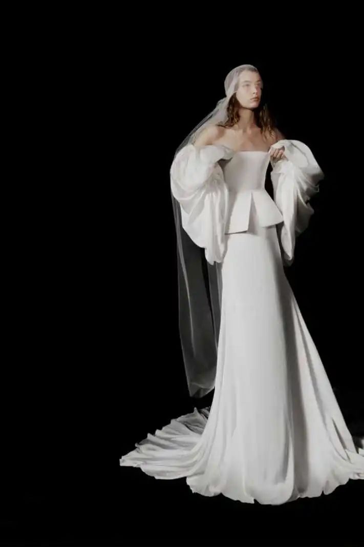 婚纱女王Vera Wang在2022秋冬季推出的全新产品线“Vera Wang Haute”就采用了半高定的概念,从面料到剪裁通通向高级定制看齐。因使用场景和象征意义的特殊性,婚纱是为数不多可以被允许一次性使用的服装之一,这是长久以来人们达成的共识。这也意味着半高定在婚纱领域拥有天生的客户,哪位新娘不想穿着量身定制的梦幻礼服走入婚姻呢?