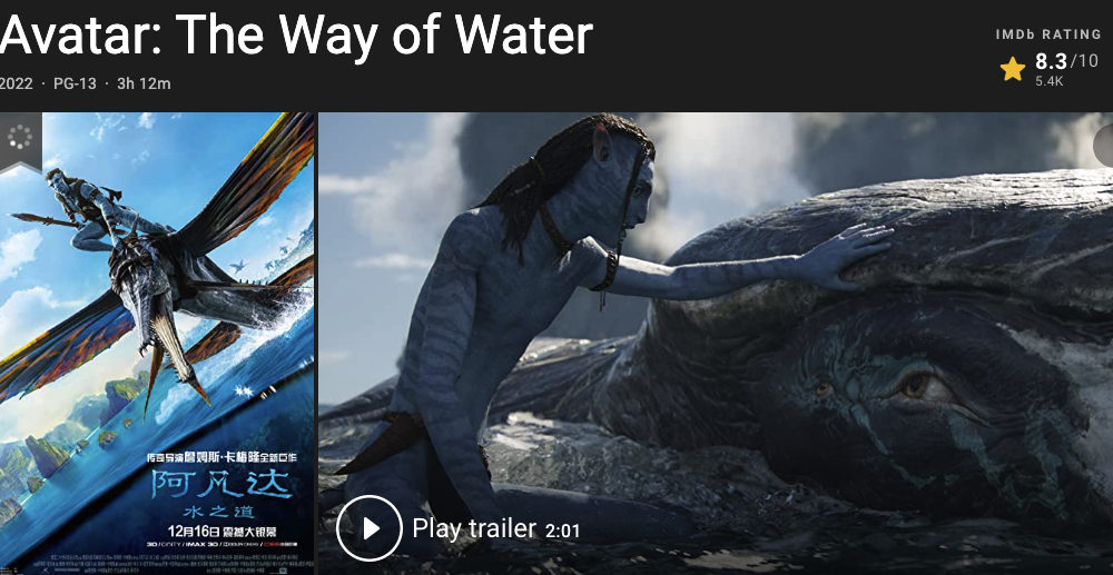 斯皮尔伯格的《大白鲨》,李安的《少年派》,到如今卡梅隆的《水之道》。