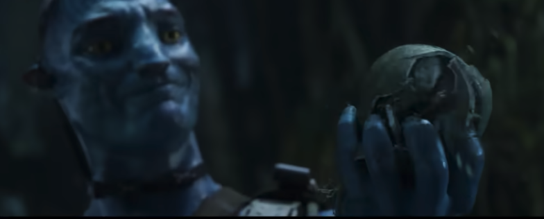 反派通过科技复活成新版“阿凡达”,同时保留着迈尔斯的意志与记忆,并且出场第一件事就是回到自己战死的地方,愤愤地捏碎“自己”的骸骨。