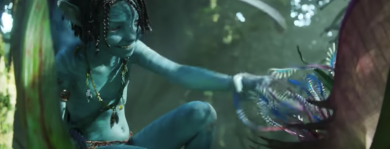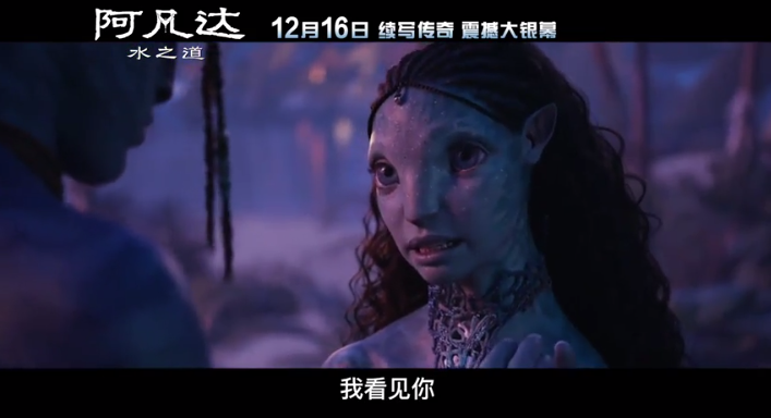 去看纳威孩童在林间雀跃地蹦跶,看少男少女藏在眉间的情愫,看图坤那被浸湿的眼睛里,与海水融为一体又清晰可见的那一滴泪。