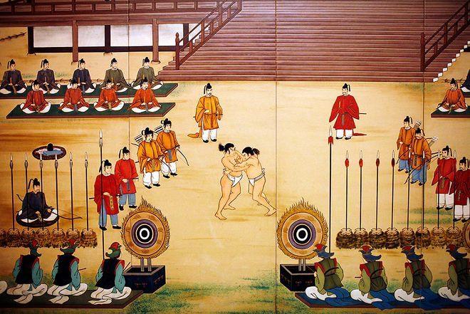 唐代宫廷中,几乎每宴必有相扑,并成立正规的组织叫“相扑棚”。宫廷的女子相扑运动大致是三步曲:第一阶段,让身着红衫绿裙的妃子们对打;第二阶段,让妃子们脱掉衣服对打,肉白脸红,滚做一团,观赏性大有提高;第三阶段,叫参赛的妃子,头上戴“金步摇”进行对阵。
