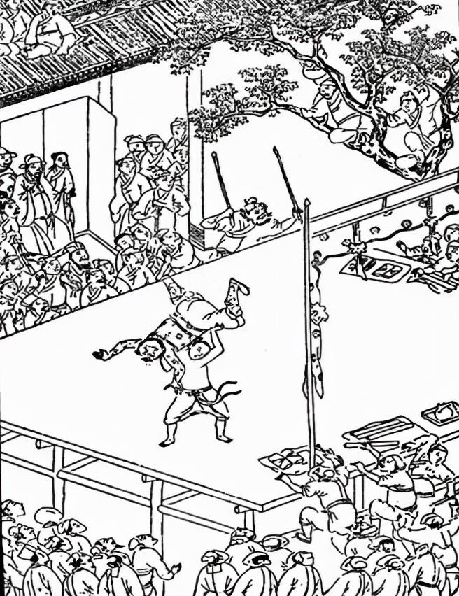 进入宋代,相扑更加普及盛行。那些相扑高手不仅在宫内为皇帝相扑,博其一笑;还在皇帝出行时,护卫在御驾左右,充当保镖。宋代男相扑发展的同时,女相扑高手也比比皆是,如赛关索、嚣三娘、黑四姐等一批女相扑竞技高手,《武林旧事》称她们“女飚”,指其招数变幻难测,身法疾速如风之意,这些女相扑高手的主要任务是热场,为男相扑正式比赛制造气氛,提升人气。只要她们一登台,三教九流纷纷聚拢过来,叫声、喊声、嬉笑声一浪胜似一浪。《水浒传》里有个猛女,叫段三娘,是个相扑好手:“女子有二十四五年纪。她脱了外面衫子,卷做一团,丢在一个桌子上,里面是箭杆小袖紧身,鹦哥绿短袄,下穿一条大裆紫夹绸裤儿,踏步上前,提起拳头,望王庆打来。”看看这个段三娘,敢与男人打擂台,这场男女混合对打的相扑,很有看头。