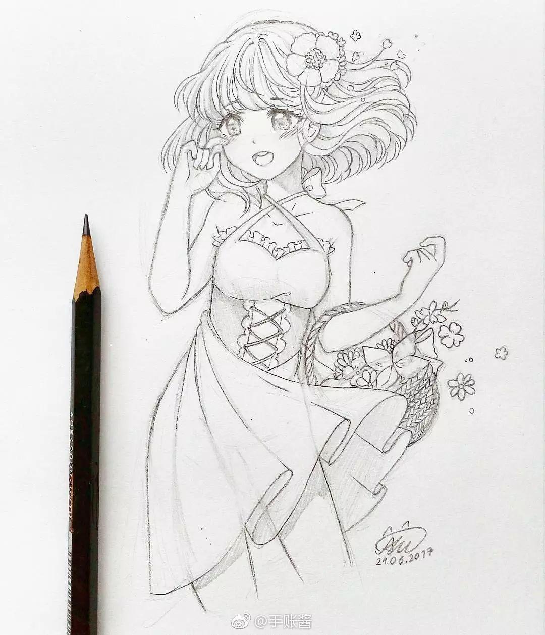 熟悉了人体的各类动态的画法之后,下一个阶段就可以尝试临摹自己喜欢的作品,从简单的开始,线稿、上色,学习他们的设计思路和服饰的搭配以及配色方案,毕竟在完整的作品中,好的服饰和配色也是重要的。