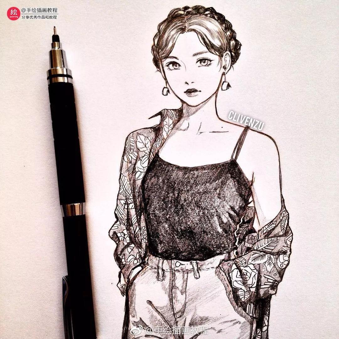 褶皱的绘制:衣服穿在身上就会产生褶皱,可表现服装质感和真实感。褶皱的产生分为3种:支点和地心引力配合所产生的褶皱、布料堆积所产生的皱褶、人工加工产生的褶皱。支点形成的褶皱,衣服的布料会随着地心引力被拉扯开。布料堆积产生的褶皱,堆积处线条会很多。人工加工所产生的褶皱 ,比起前面两种褶皱更好画一些,这类褶皱多见于裙摆的褶皱。
