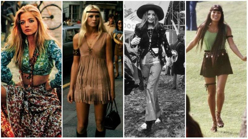 嬉皮士反主流文化定义了60年代末。嬉皮士男女都喜欢把头发留得又长又乱。他们穿着喇叭裤、镶边衣服、印花衬衫、农民衬衫和其他色彩鲜艳的设计。