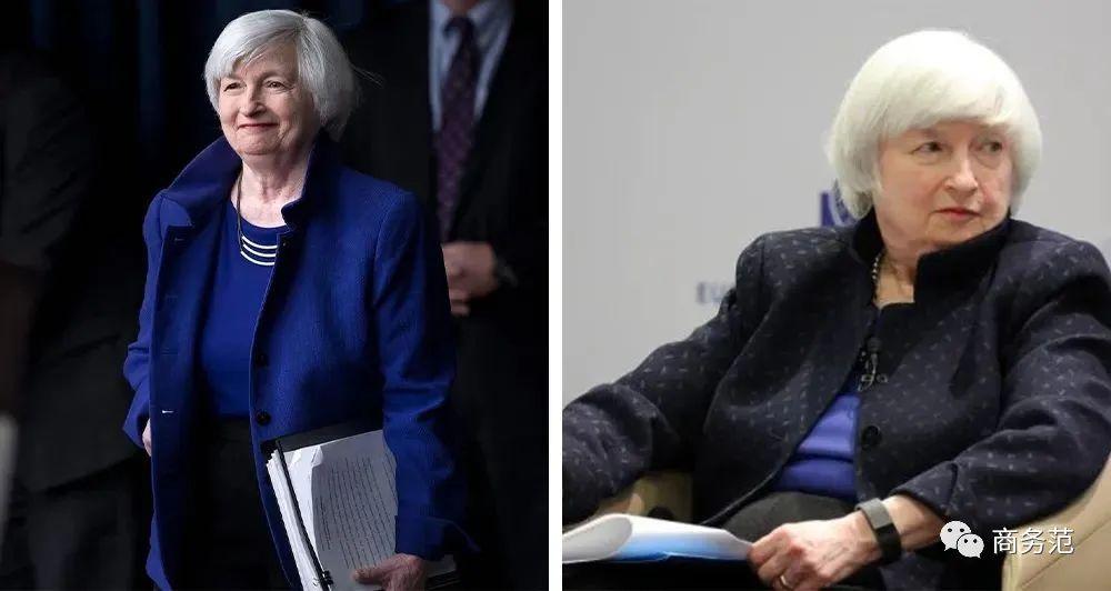 美国财长珍妮特·耶伦也是偏爱经典的深色系权力套装,深蓝和全黑都pick过,还喜欢把领子立起来穿,给人一种深藏不露的感觉。