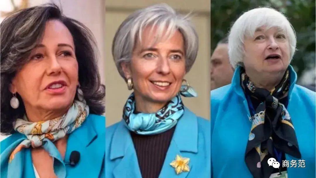 她们的默契配饰中,丝巾就是之一,而且有不少女大佬都选择过蓝色外套来搭配,金融圈这“撞衫”率也是很高了。