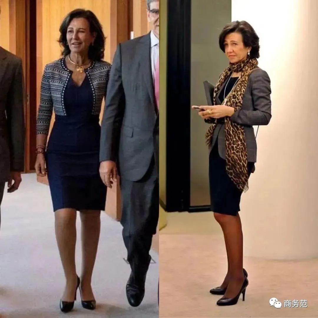 Ana Botin这种的西装外套/短上衣+内搭连衣裙的方法,也是权力女性们的职场搭配利器,既凸显女人味又不失干练。