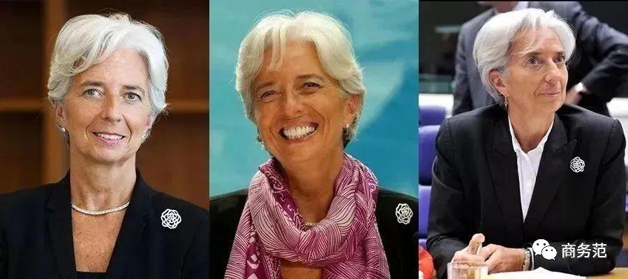 拉加德也喜欢在黑色套装上,搭配一枚醒目的香奈儿山茶花镂空胸针,成为她大多数亮相时的固定搭配。