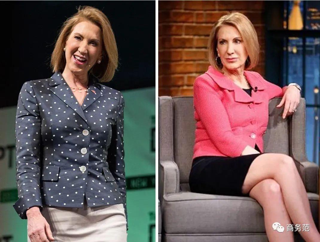 除了成套穿,用单件西装混搭,也是很多女老板青睐的搭配方法。惠普前CEO Carly Fiorina就喜欢用西装搭配撞色下装,整体上耐看不乏味味。