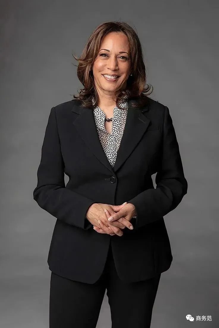 而随着时代的演进,除了裙装,以长裤为下装的套装也越来越受青睐,现在的美国副总统哈里斯,就是这种风格的代表。