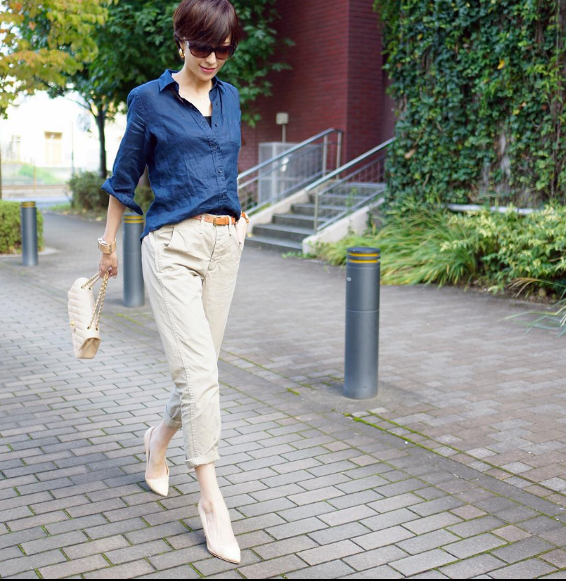 就如这位时尚博主高山玲奈,她的穿搭点到为主,基础的款型,和谐的配色,配上一头清爽的离子烫或直短发,把40+这个年纪的丰收美好尽收眼底。