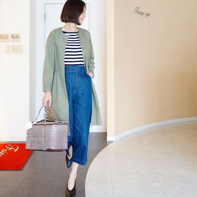 比如绿色风衣+蓝色阔腿牛仔裤,清新的绿蓝组合,在不同环境烘托下,依然有质感和衬肤色。