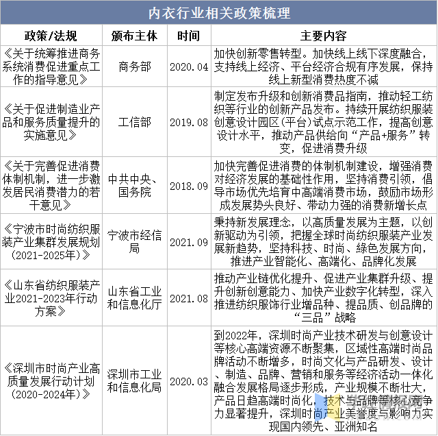 内衣行业相关政策梳理