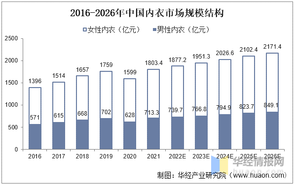 2016-2026年中国内衣市场规模结构