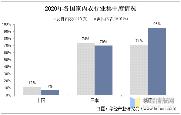 2020年各内衣行业集中度情况