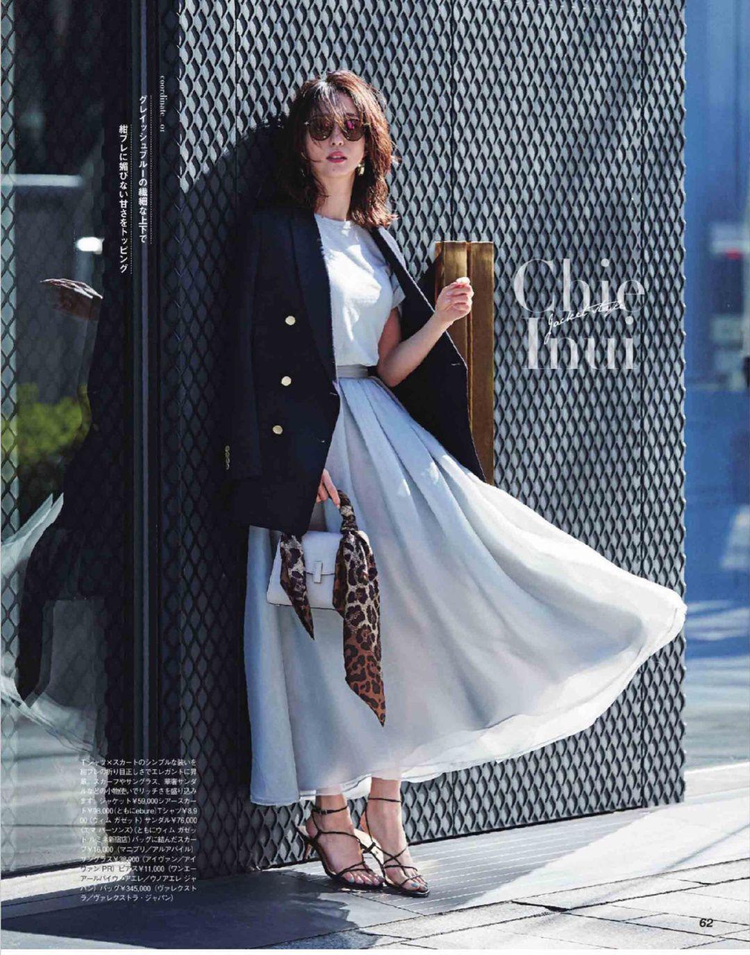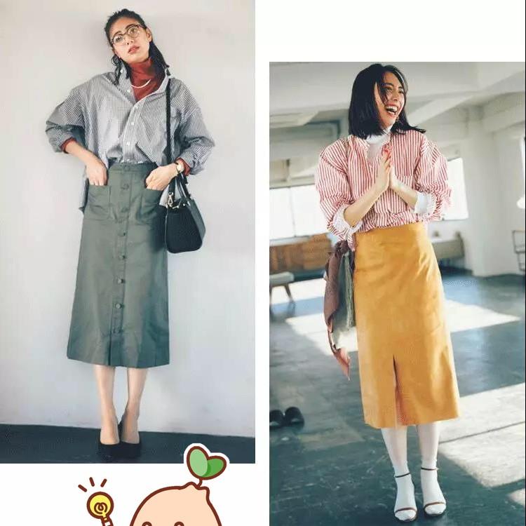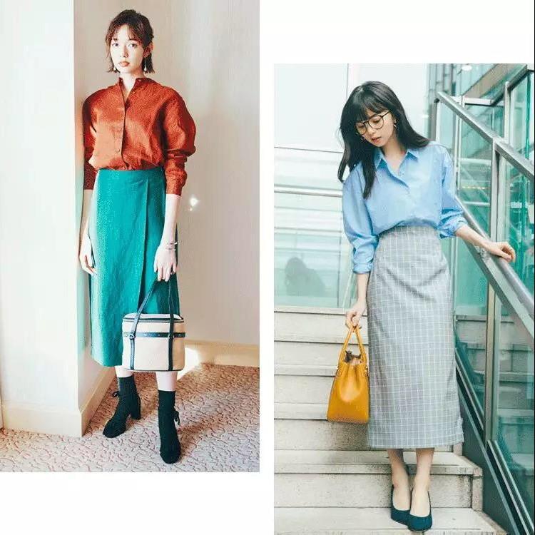 秋天上班通勤搭配示范LOOK1、“衬衫+半身裙”,气质又正式