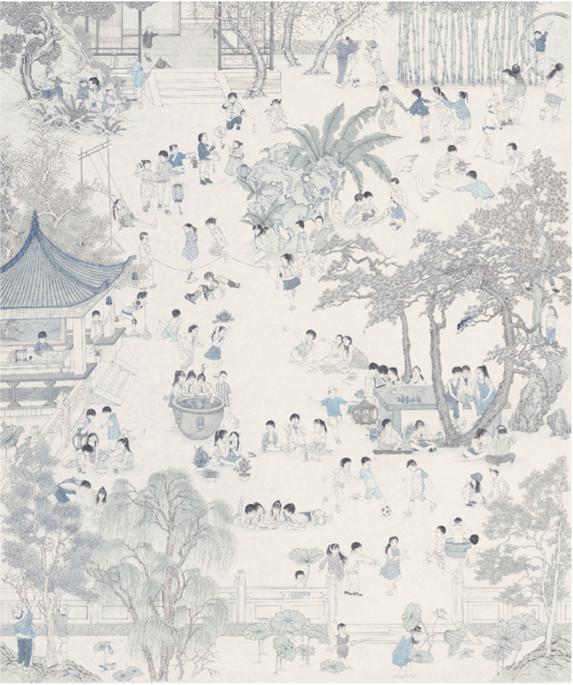 因此,我决定用我的画笔来描绘一幅二十一世纪的“新百子图”,让这一古老的图式在新的时代复活并焕发新的生机。
