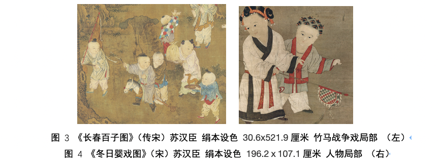 张贴于节庆之日的“百子图”是婴戏题材绘画的集合与升华,一直以来在人们的观念中都是多子多福的吉祥图式,然而通过我博士论文对于该图式的研究,发现百子图的出现与北宋末年严峻的人口问题息息相关,它是宫廷针对民间“不举子”现象颁布的一种人口政策。然而百子图又不仅仅是鼓励民间生育的一种图像,它其实是以绘画见长的皇帝宋徽宗组织画院画工开创的、用以驱邪禳灾和祈福国祚的祥瑞绘画样式,在类似某种祭祀活动的观画仪式上宣示天下,以显丰亨豫大的祥瑞盛世。