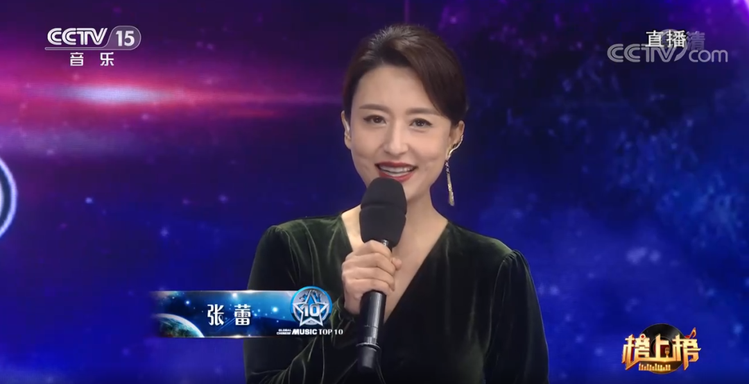 除了主持八一晚会,张蕾今年还主持了-15音乐频道的节目《中文音乐榜上榜》。