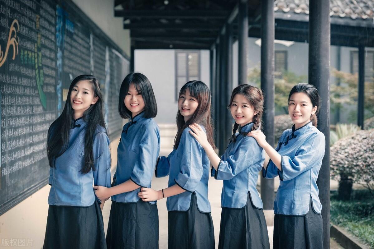 是民国风——学生装,继承了汉服中上身穿袄,下身穿裙的样式,但是到了民国初期,裙长逐渐缩短并且缩减腰身,而且有了倒喇叭的设计,也就是五四装的前身。北伐后,学生装才真正成形,而学生装主要是以淡蓝色的布上衣为主,还有旗袍式领口,衣长一般不会过臀。那么下身则是搭配深蓝色裙装或者黑色百褶裙,一般不带花纹修饰,以朴素为主。