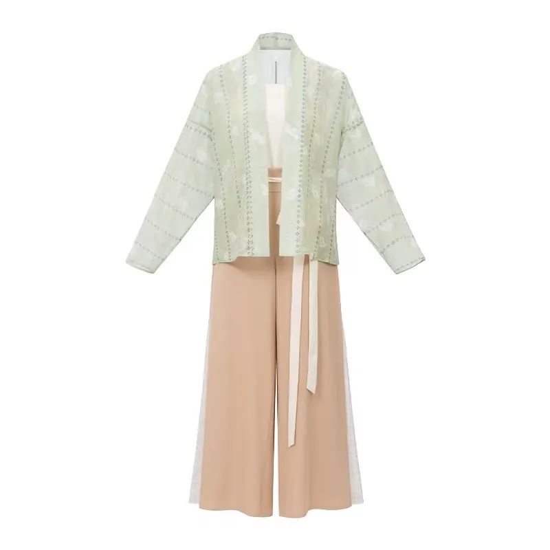 宋裤传统的宋裤内层有两根裤管,开裆,靠两片交叠的三角形区域围合,外层合裆,两侧形成高开叉,上洗手间极为不便。近年来,宋裤经过改良,变为了双层高开叉的阔腿裤形式,不仅保留了传统的层次飘逸,也更方便了穿着。
