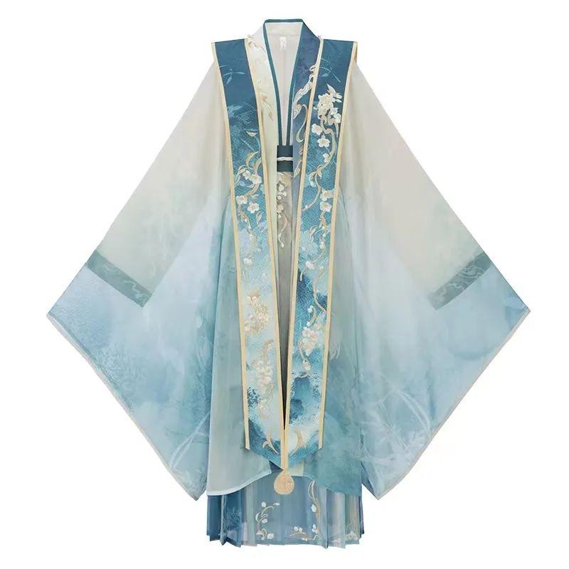 大袖衫大袖衫衣长及脚踝,袖长且宽,是穿着于外层的衣裳,需搭配霞帔,为女子的礼服,古代日常不会穿着,一般用于出席重要的场合。