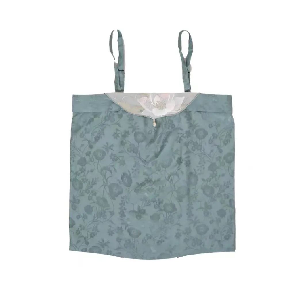 宋抹宋抹,即宋代女子所穿的抹胸,古时的形制似一较宽的长巾,两边各有一条系带,穿着时先裹后系。现今为方便穿着,不少商家对宋抹进行了改良,制成了吊带形式。