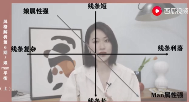 所以,把线条的曲直和长短这两个维度综合起来看的话就是线条繁杂、线条越短,娘属性就越强;线条越干净利落、线条越长,越man;剩下的两个都是娘man平衡的冷暖之间。那记住了线条的曲度和长短,下次自己选衣服的时候,分析单品就可以快速、清晰的选择出来啦!