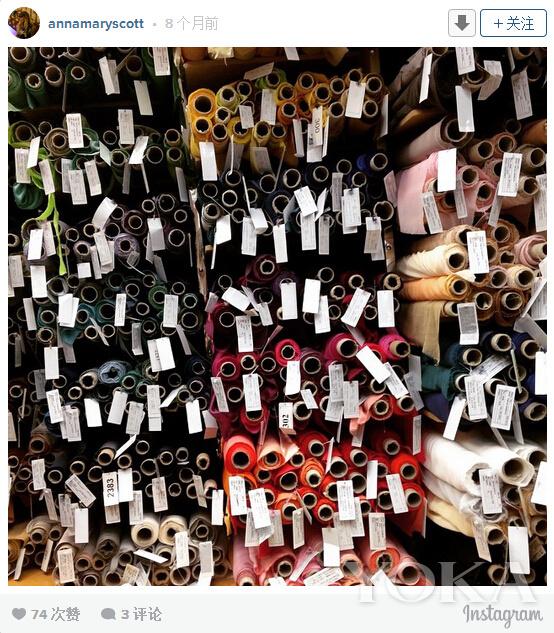 服装师Anna Mary Scott Robbins在Instagram上发剧中人物服装所用的面料