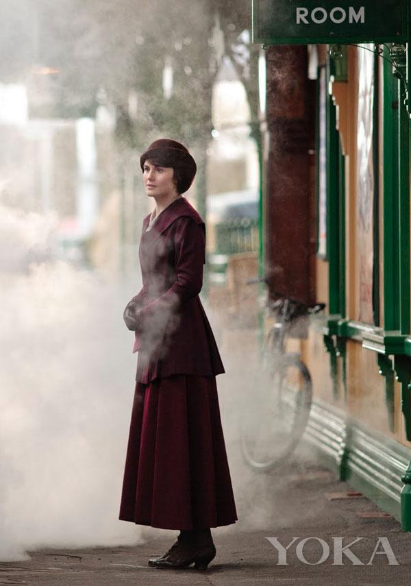 第二季里送别出征的大表哥,Lady Mary一身酒红色的呢外套、长裙和礼帽,充满女人味又不张扬,很贴合她当时留恋不舍的情感。